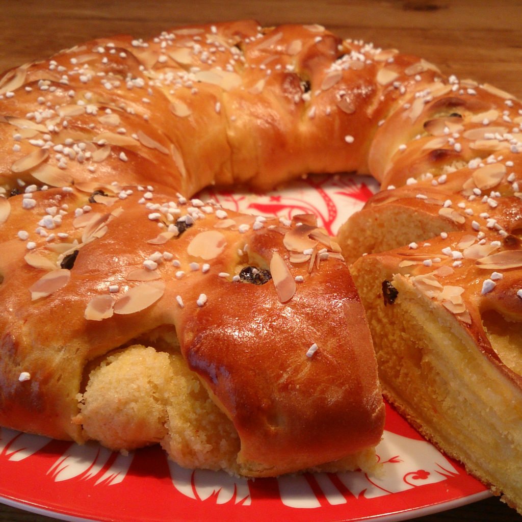 Dit is een heerlijke, smeuïge saffraankrans met smaak van amandel en sinaasappel. Perfect als je graag koffiebrood met saffraan wilt maken maar misschien de gewone saffraanbroodjes (lussekatter) niet zo lekker vindt!